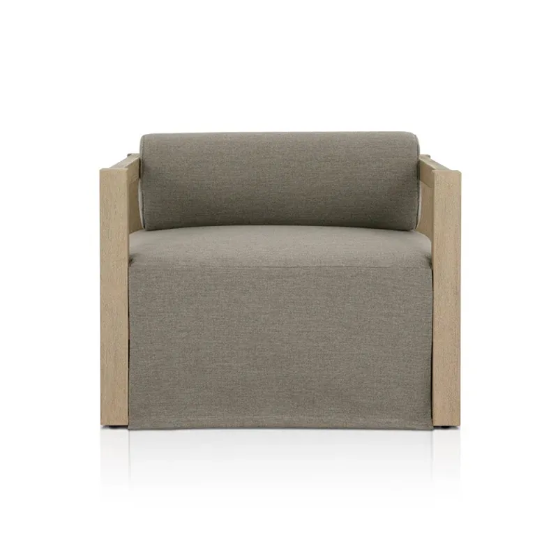 Dizajn stoličky sa navyše zameriava na bezpečnosť používateľa, so zaoblenými hranami, ktoré eliminujú ostré rohy a znižujú riziko možného zranenia pri kolízii počas používania. Tento užívateľsky prívetivý dizajn umožňuje celej rodine, aby ho mohla pokojne používať bez obáv z náhodného zranenia. Aby sme pohodlie posunuli na vyššiu úroveň, navrhli sme každé terasové kreslo so špeciálnymi plyšovými vankúšmi, ktoré sú nielen odolné voči poveternostným vplyvom, ale aj mäkké. dotyk, vďaka čomu si pri relaxácii vonku užijete bezkonkurenčné pohodlie. Tento vankúš, navrhnutý s ohľadom na dlhé obdobia sedenia, je bohato čalúnený a podporný, čím premení váš vonkajší priestor na skutočné útočisko oddychu. Látka vankúša dopĺňa bohatú kresbu dreva drevenej stoličky. Kombinácia oboch nielen zvyšuje vizuálny pôvab sedacej časti, ale tiež zvyšuje celkový zmysel pre dizajn. Mäkké tkaniny sa stretávajú s drsnou štruktúrou dreva a vytvárajú sofistikovaný a vyvážený vzhľad, ktorý nepochybne zvýši krásu a pohodlie každého vonkajšieho priestoru.