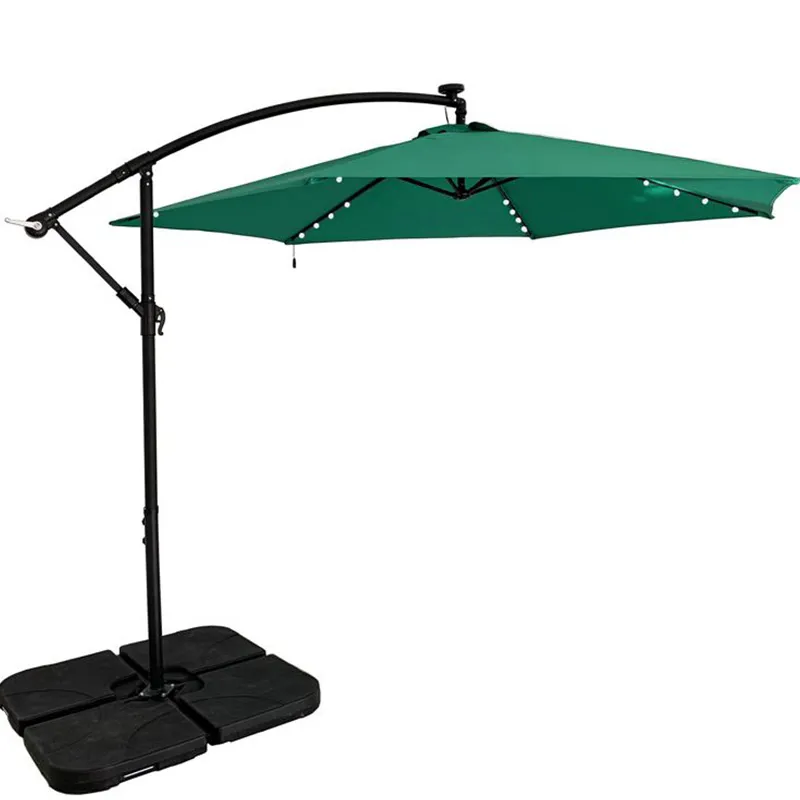 Solárny Cantilever Umbrella je veľmi ekologická voľba slnečníka. Je vybavený solárnou dobíjacou batériou, ktorá sa môže sama nabíjať, keď je slnko dostatočné, a v noci sa dá použiť ako svetelný pás. Táto technológia nestojí peniaze a neplytvá prírodnou energiou a je veľmi hodná propagácie. Takýto vynikajúci dáždnik je vyrobený v Číne, s oceľovou konštrukciou, ktorá má bezpečné a stabilné vlastnosti, je netoxický a je veľmi vhodný na vonkajšie použitie. Použitie zelene ako slnečnej clony plne stelesňuje ochranu životného prostredia.