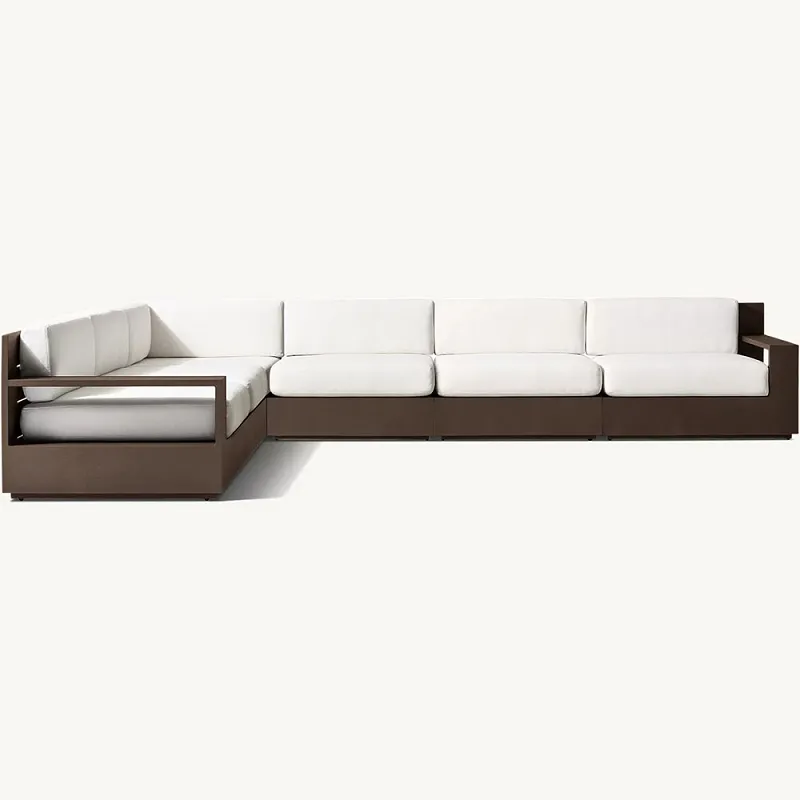 Táto pohovka má modulárny dizajn, ktorý možno nakonfigurovať tak, aby sa zmestil do akéhokoľvek vonkajšieho prostredia, vďaka čomu je všestrannou voľbou pre akékoľvek usporiadanie záhrady. Sekcionálna pohovka na dvore je vybavená plyšovými vankúšmi do každého počasia, ktoré poskytujú vynikajúce pohodlie a podporu, ideálne na hodiny relaxácie alebo spoločenských stretnutí. Elegantný, minimalistický štýl hliníkového rámu je doplnený mäkkým čalúnením, ktoré je dostupné v rôznych farbách, aby ladilo s akýmkoľvek dekorom.