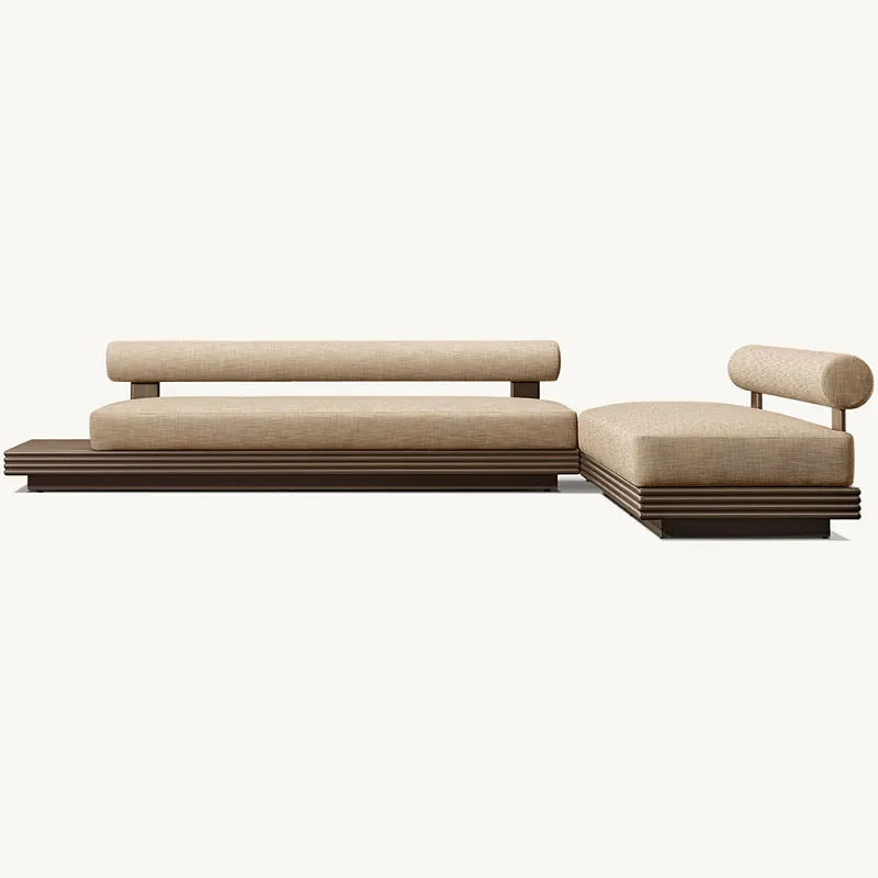 Naša polkruhová vonkajšia pohovka je vyrobená s vysokokvalitným hliníkovým rámom, vďaka čomu je odolná a štýlová. Hliník je známy svojou ľahkou pevnosťou a odolnosťou voči hrdzi, vďaka čomu je vynikajúcou voľbou pre vonkajší nábytok, ktorý musí odolať prírodným živlom. Elegantná povrchová úprava hliníka zvyšuje estetickú príťažlivosť pohovky a poskytuje moderný vzhľad, ktorý dopĺňa akýkoľvek vonkajší dekor.