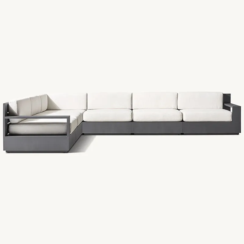 Vneste do svojho vonkajšieho priestoru eleganciu a funkčnosť s naším záhradným gaučom v tvare L. Tento krásne vyrobený kus nábytku je ideálny na optimalizáciu sedenia na vašej záhrade alebo terase a poskytuje luxusný a príjemný kútik pre relaxáciu a spoločenské stretnutia. Táto pohovka je vyrobená z prvotriedneho hliníka a spája odolnosť s elegantným dizajnom a vytvára dokonalý zážitok z leňošenia vonku.