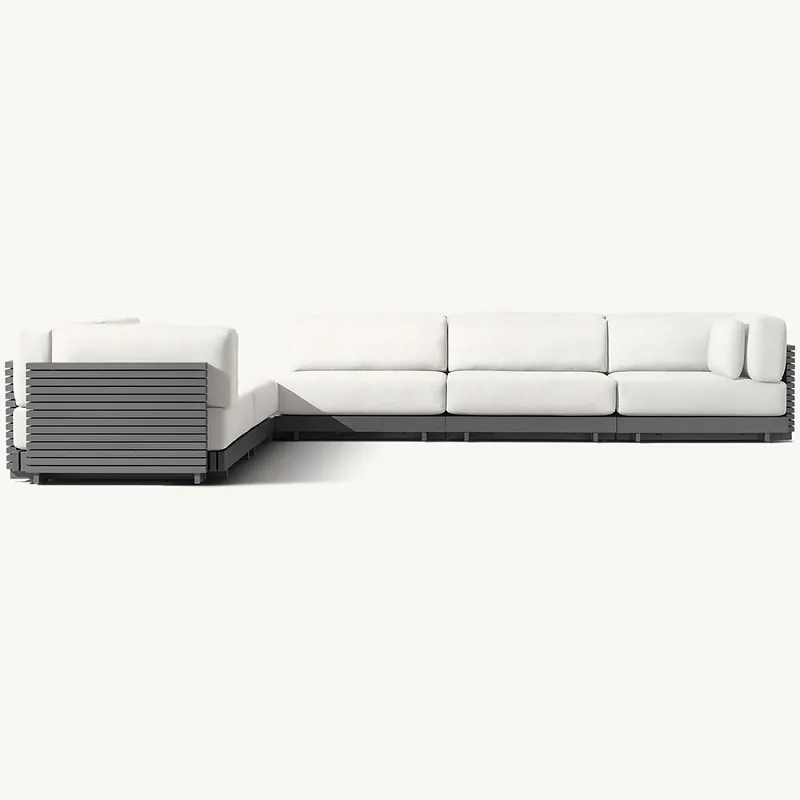 Prispôsobivosť je pri našej vonkajšej pohovke L na terase kľúčová. Či už je váš vonkajší priestor veľký alebo malý, túto pohovku možno nakonfigurovať tak, aby vyhovovala akémukoľvek prostrediu. Jeho tvar L sa prirodzene hodí do rohov, aby maximalizoval podlahovú plochu a zároveň ponúka otvorenú pozvánku pre rodinu a priateľov, aby si sadli a oddýchli si. Elegantný minimalistický dizajn dopĺňa akúkoľvek výzdobu terasy, od moderného minimalistického po rustikálny šarm, vďaka čomu je všestrannou voľbou pre vonkajšie dekorácie.