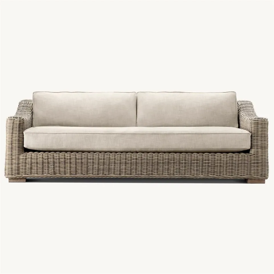 Pokiaľ ide o vonkajšiu prípravu, sme odhodlaní poskytovať vám produkty najvyššej kvality. Naša slnečná ratanová pohovka je vyrobená z rámu z hliníkovej zliatiny, ktorý zaisťuje stabilitu a odolnosť základne, čo vám umožňuje používať ju s pokojom na duši. Zvolený prútený materiál je nielen krásny a odolný, ale tiež účinne zabraňuje miernemu poveternostným vplyvom a vyblednutiu a dodáva vášmu vonkajšiemu priestoru prirodzenú krásu.